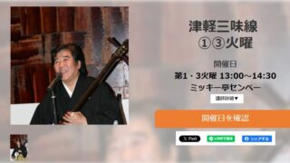 お知らせ セブンカルチャークラブで津軽三味線教室を開催 セブンカルチャークラブ北砂店において次の日程で津軽三味線教室を開催いたします。2025/09/02(火)13:00~14:302025/09/16(火)13:00~14:302025/10/07(火)13:00~14:302025/10/2... 2025.08.22 お知らせ津軽三味線教室